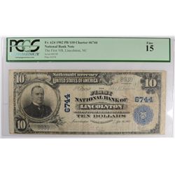1902 $10 NATIONAL LINCOLNTON, NC #6744 (ONLY 4 KNOWN) PCGS 15148 - 1902 $10 NATIONAL LINCOLNTON, NC #6744 (ONLY 4 KNOWN) PCGS 15