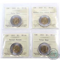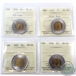 Loon $1 2005 Terry Fox, 2008 Olympic, 2009 Montreal 100th Anniversary & 2010 Navy ICCS Certified MS-66. 4pcs