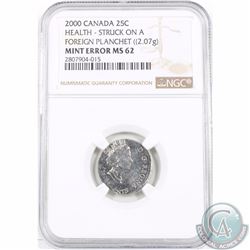 1-cent 1980 Struck on a Foreign Blank (2.14g). NGC Certified MS-65 RB. A nice soft burnt orange colour with approximately 85% of full strike visible.
