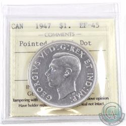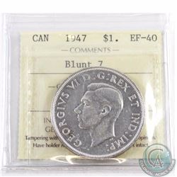 Silver $1 1947 Pointed 7 ICCS Certified EF-40