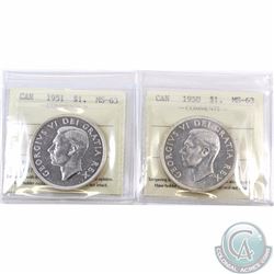 Silver $1 1950 & 1951 ICCS Certified MS-63. 2pcs