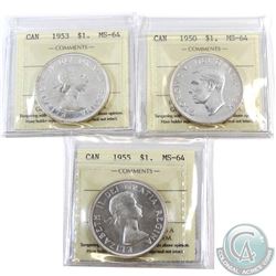 Silver $1 1950 SWL, 1953 NSF & 1955 ICCS Certified MS-64. 3pcs