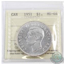 Silver $1 1951 Arnprior ICCS Certified AU-50