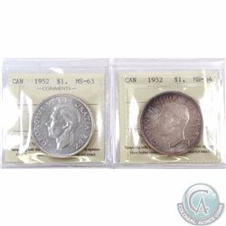 Silver $1 ICCS Certified 1952 No Waterline MS-63 & 1952 Waterline MS-64 lustrous red and pink toning. 2pcs