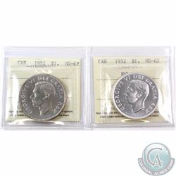 Silver $1 1952 NWL & 1952 SWL ICCS Certified MS-62. 2pcs