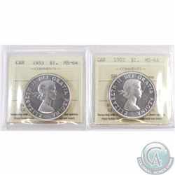 Silver $1 1953 SF Heavy Cameo & 1953 NSF ICCS Certified MS-64. 2pcs