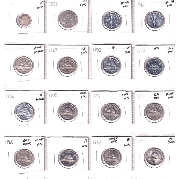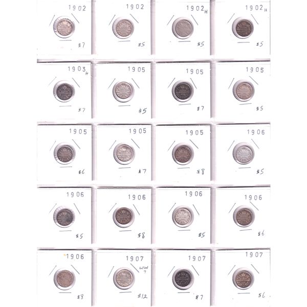 Canada 5-cent 1902-1920 Bulk Lot Collection In 4x 20-Pocket Sheets. 75pcs.