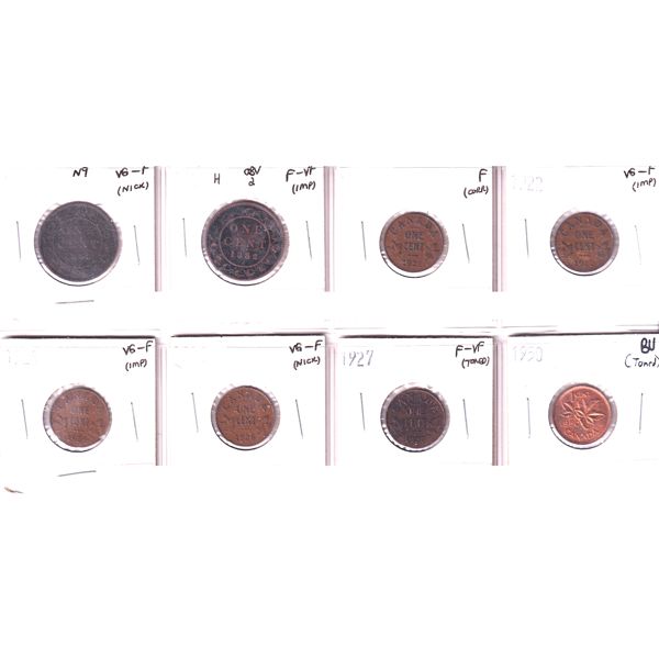 Canada Penny & Halfpenny 1850-1857 Bulk Lot Collection In 20-Pocket Sheet Good to EF. 19pcs.