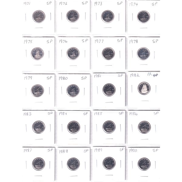 Canada 10-cent 1971-2022 Bulk Lot Collection In 3x 20-Pocket Sheets. 50pcs.