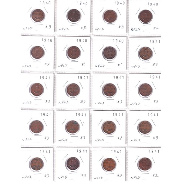Newfoundland 1-cent 1940-1947 Bulk Lot Collection In 6x 20-Pocket Sheets. 108pcs.
