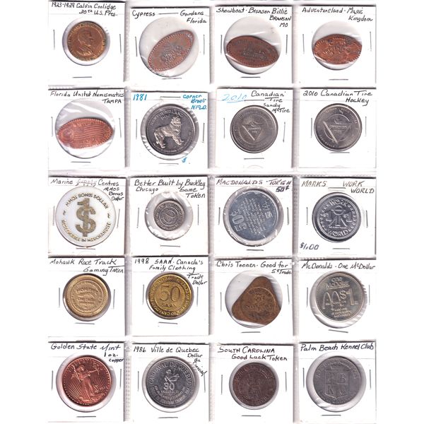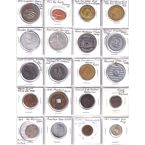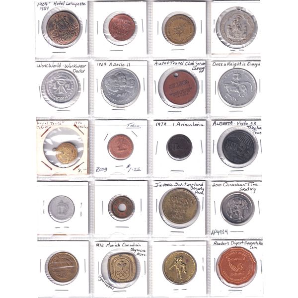 INCLUDES: 1904-1954 Hotel Lafayette, Work World Workwear Dollar, 1972 Munich Canadian Olympic Assoc. & Many More!! Tokens may contain various im...