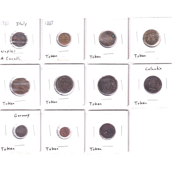 INCLUDES: Italy 1788 4 Cavalli, Columbia, Germany & Many More!! Tokens may contain various imperfections; please see images for details. 11pcs.