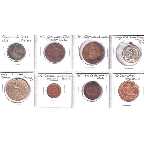INCLUDES: 1821 George IV Visit to Ireland, 1953 Coronation Elizabeth II, 1967 Canada Confederation & More!! Tokens may contain various imperfect...
