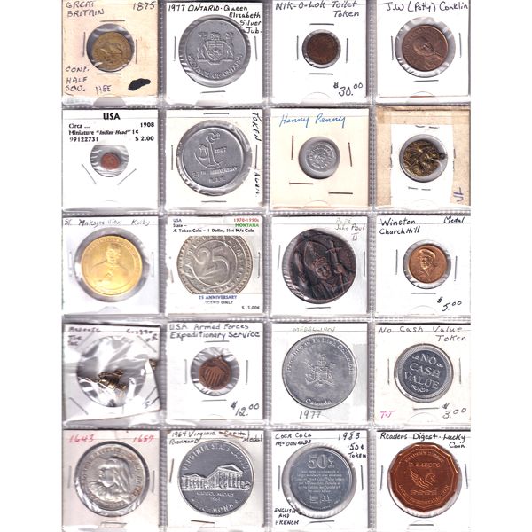 World Bulk Collection Of Assorted Tokens. 20pcs.