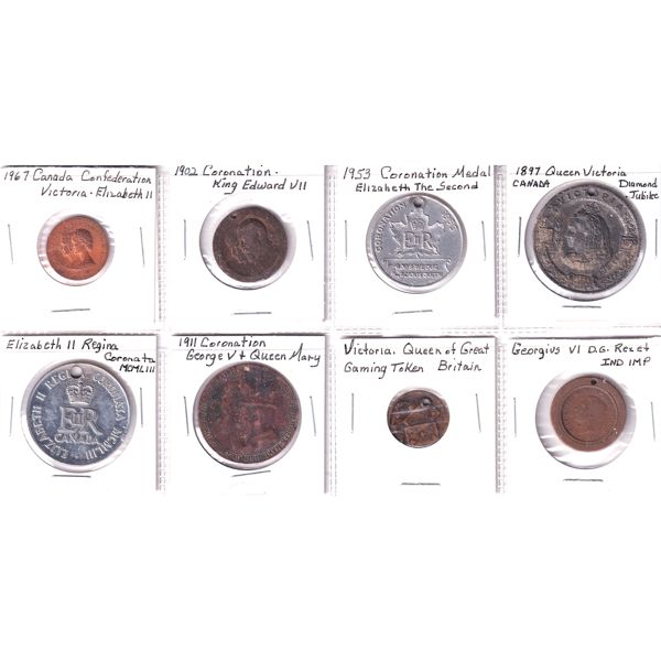 INCLUDES: 1911 Coronation George V & Queen Mary, 1953 Coronation Medal, 1967 Canada Confederation & More!! Tokens may contain various imperf...