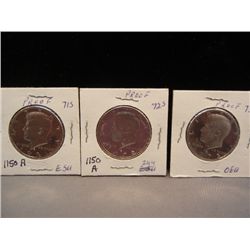 Three 40% Silver Proof Kennedy Half Dollars 1971-S, 1972-S, 1973-S