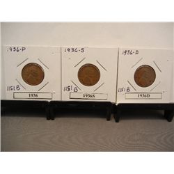 Three 1936 P,D & S Lincoln wheat Cents