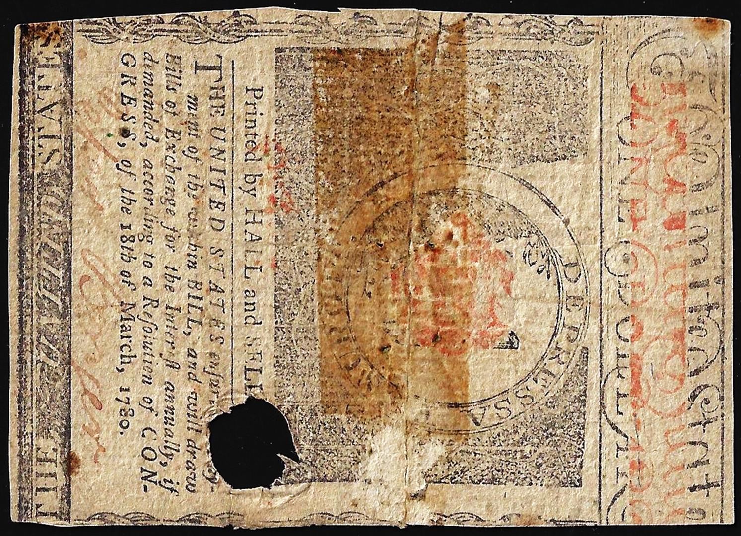 One May 5, 1780 $1 Massachusetts-Bay Colonial Currency Note.