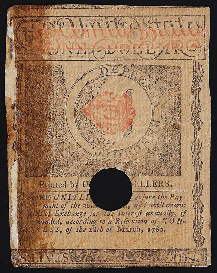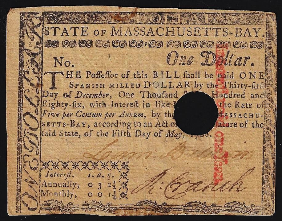 One May 5, 1780 $1 Massachusetts Continental Currency Note.