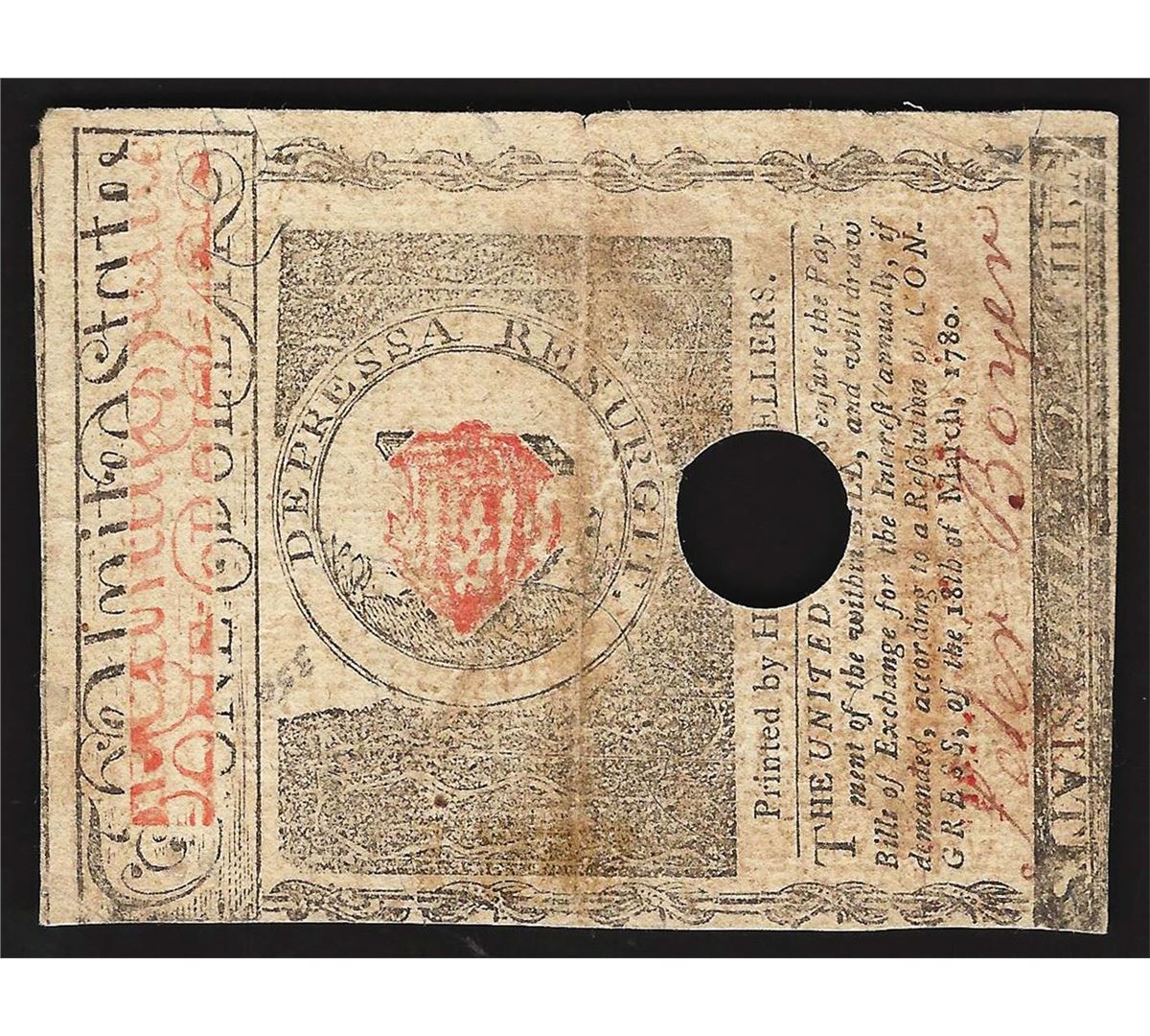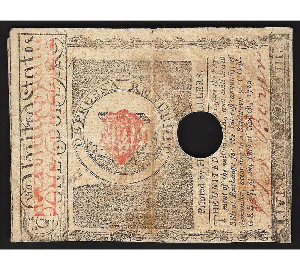 One May 5, 1780 $1 Stats of Massachusetts-Bay Spanish Milled Colonial Currency Note.