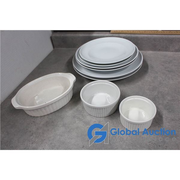 White Plate Set, Ramakins, and Oven Proof Dishes