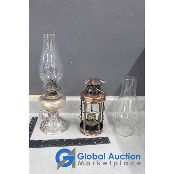 Glass (Turning Color) Finger Oil Lamp and Lantern w/Glass Shades