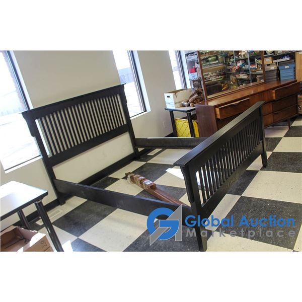 **Black Queen Wood Bedframe w/Headboard, Footboard, & Side Rails