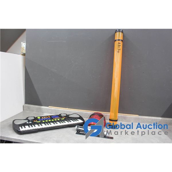 Spiderman Mask, Starwars Sabber, Poster Tube and Key Board