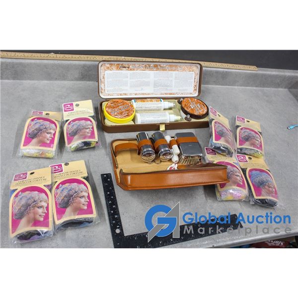 Vintage Hair Bonnets, Gillett Kit w/Case and Leather Care Kit in Hard Case