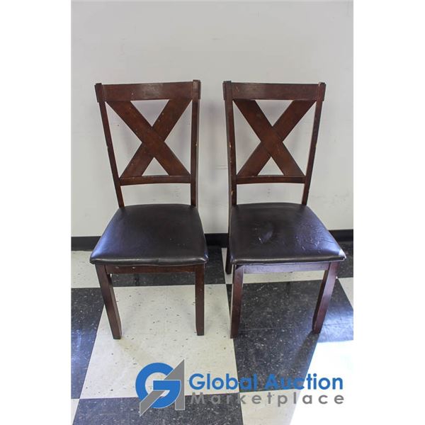 **(2) Vintage Dark Wood Chairs w/Leather Seats