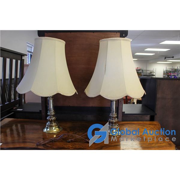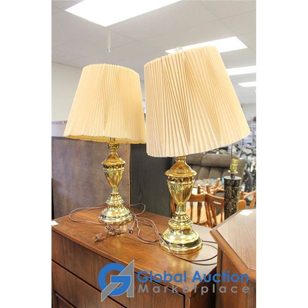 **(2) Brass Side Table Lamps