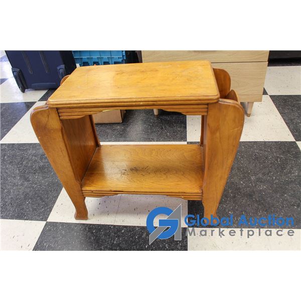 **Wooden Side Table w/Magazine Holders