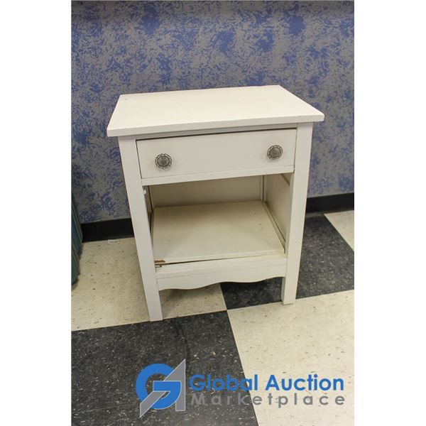 **Wooden White Side Table w/Drawer