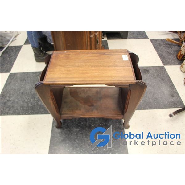 **Wooden Side Table w/Magazine Holder