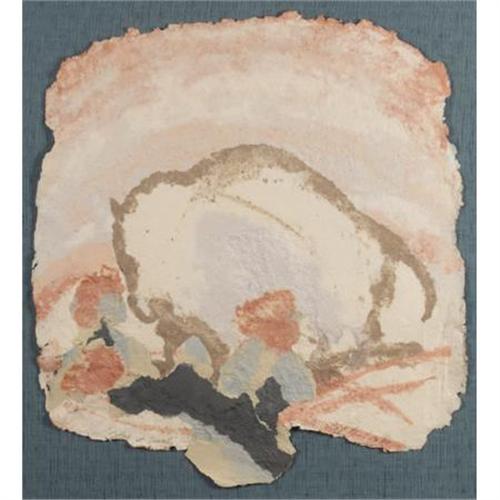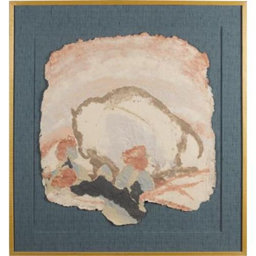 <B>May Good</B></I><BR><I>Buffalo at Sunset</B></I>, 1989<BR>Paper on aqua silk<BR>43-1/2 x 40 inches<BR><BR><b>Shipping:</b> Requires 3rd Party Shipping (<a target="_blank" href="http://www.heritageauctions.com/common/shipping.php">view shipping information</a>)
