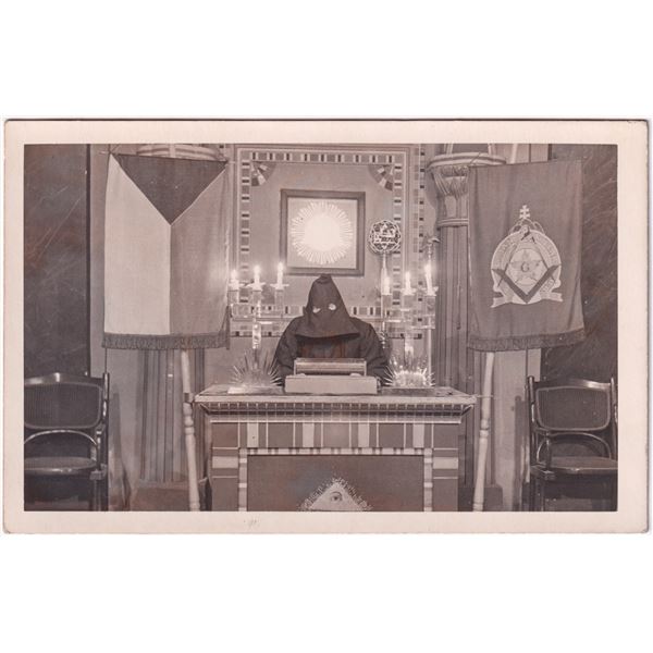 Lot of six original photographs of German Freemasons in Slovakia. The photographs show men in covered garb with skeletons, skulls, holding swords, Mas