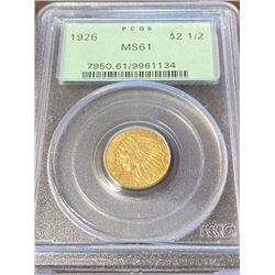 21w - 1926 MS 61 $2.5 Gold Indian Coin PCGSAntique Finders Services / AFS INC