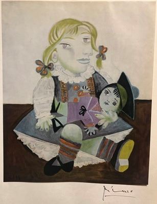 Pablo Picasso Lithograph "Maya with Doll" a colorful Cubist portrait of Picasso’s daughter as a child clutching a doll, Pablo Picasso was a Spanish painter, sculptor, printmaker, ceramicist, stage designer, poet and playwright who spent most of his adult life in France.