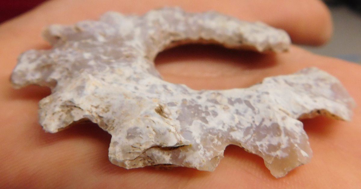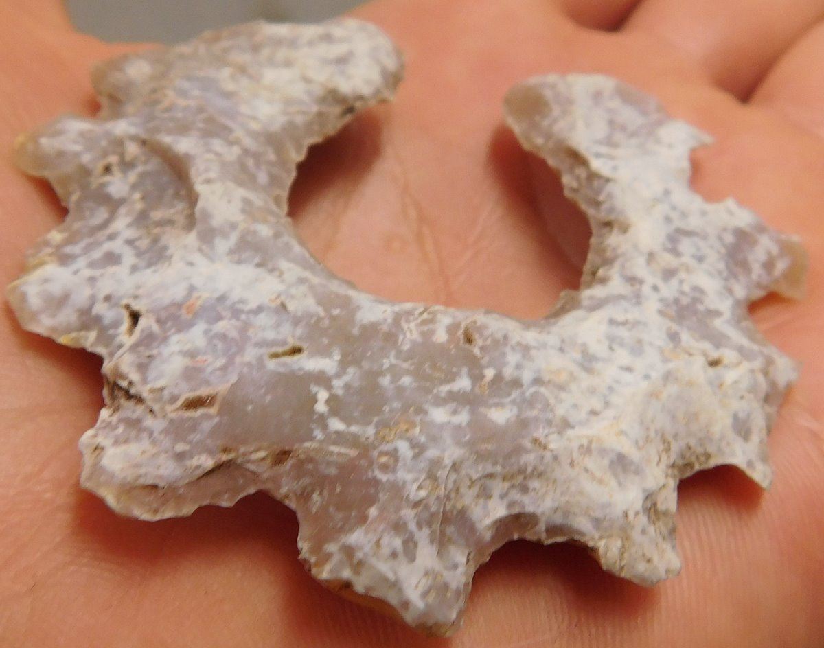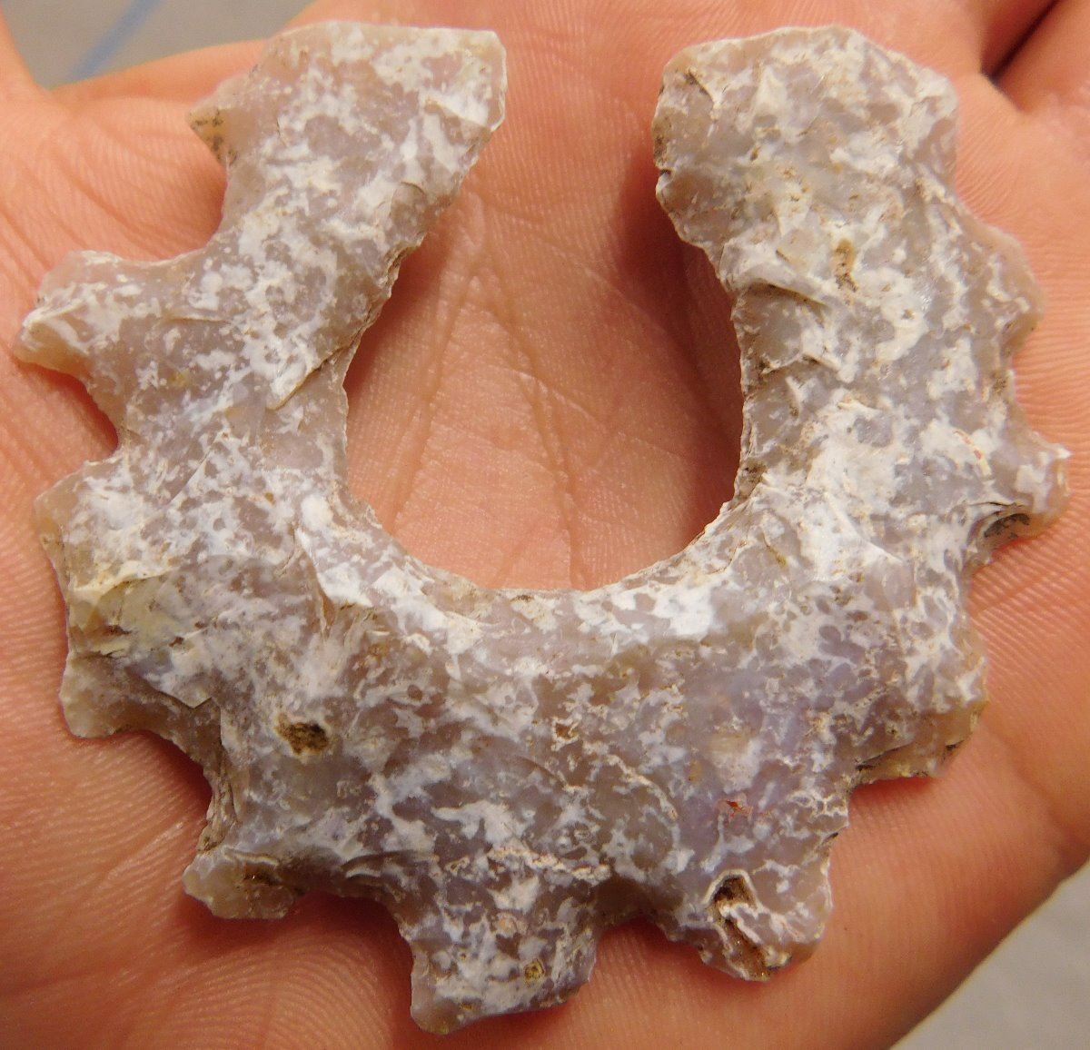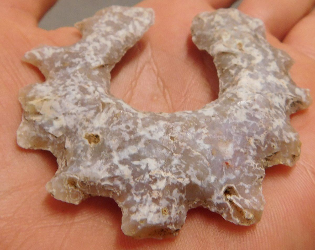 Mayan Eccentric, circa 1500 years old. Made of flint, the item measures 2 7/16" x 2 9/16". From Guatemala. Papered by Bill Jackson. Frame not included. Condition: Very nice, see images. Shipping: $24.00 w/insurance and signature.