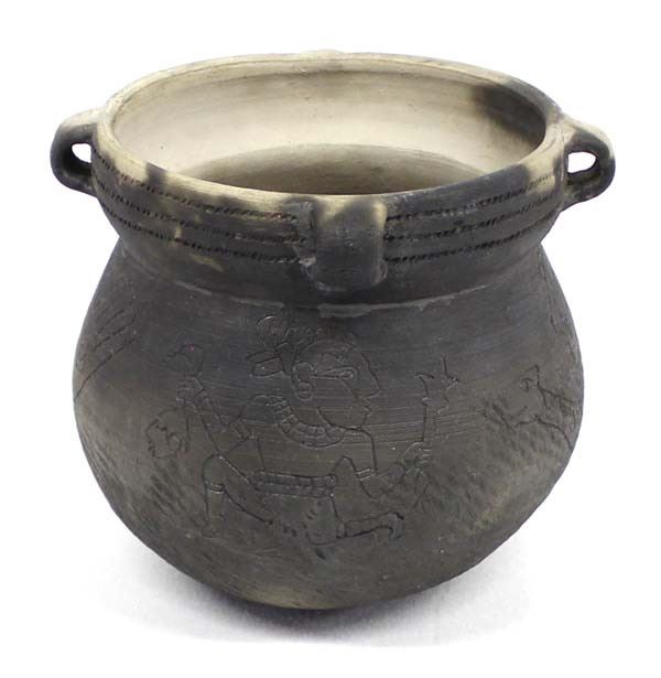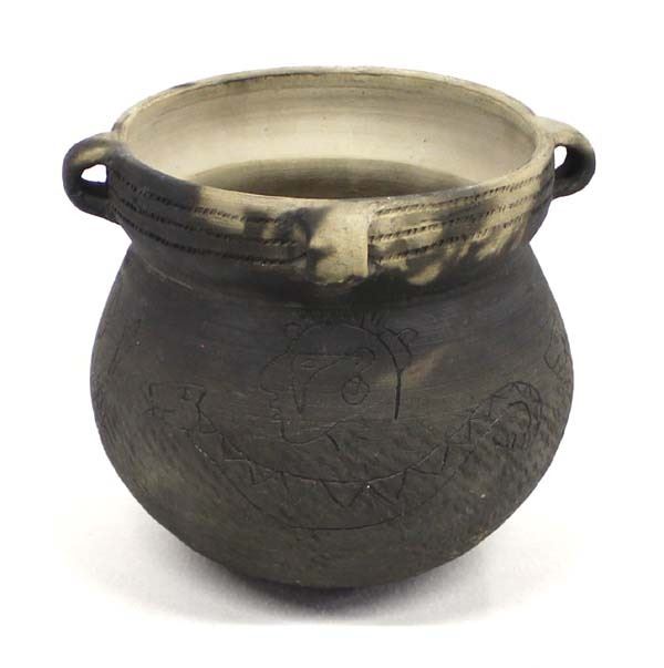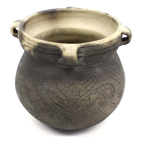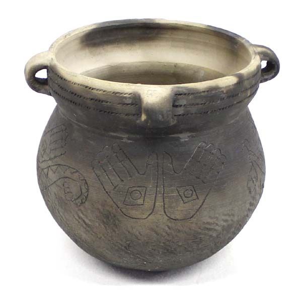 Mayan Multi-Handle Pictorial Pottery Jar Replica, measures 7'' x 7'', artist's initials on the bottom