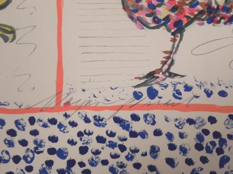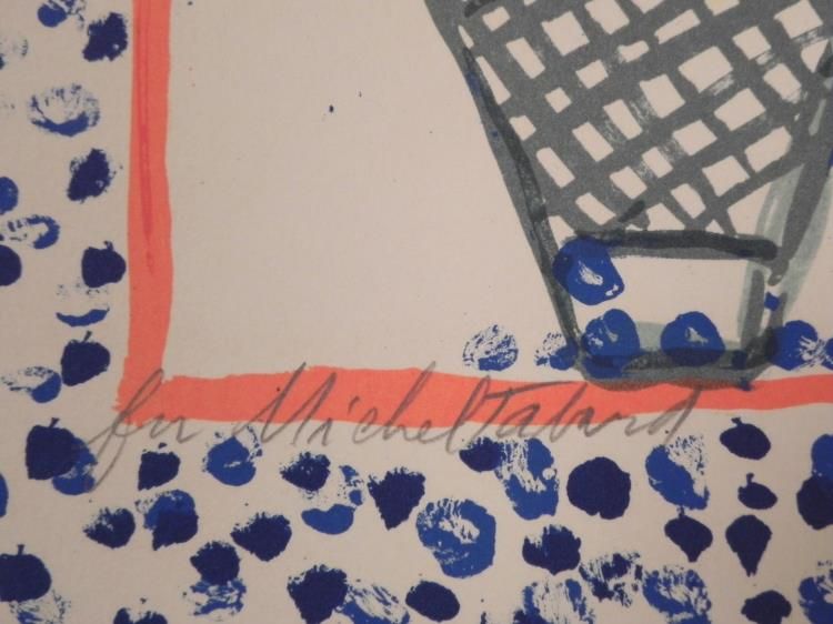 This is a pretty display of country images, with indoor flowers and backyard chickens. Artist: Mayan Pisart Signature: In pencil, lower right d Year: 1978 Medium: Lithograph on rag paper Edition: Unnumbered, dedicated artist's proof, marked "for Michel Tabard" in pencil, lower left Sheet size: 28 x 23 inches Condition: Excellent We are pleased to present from an estate a group of dedicated artist proofs.