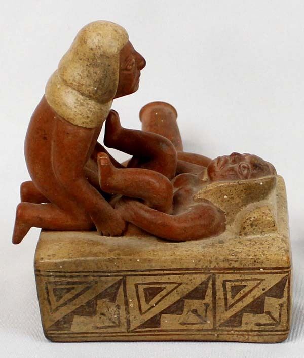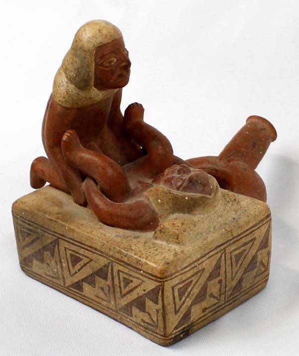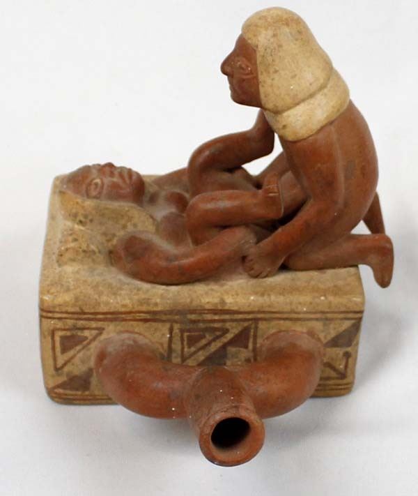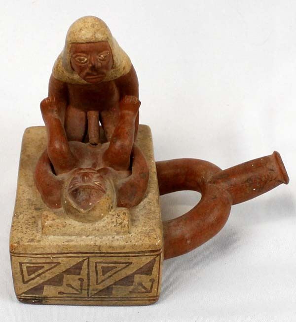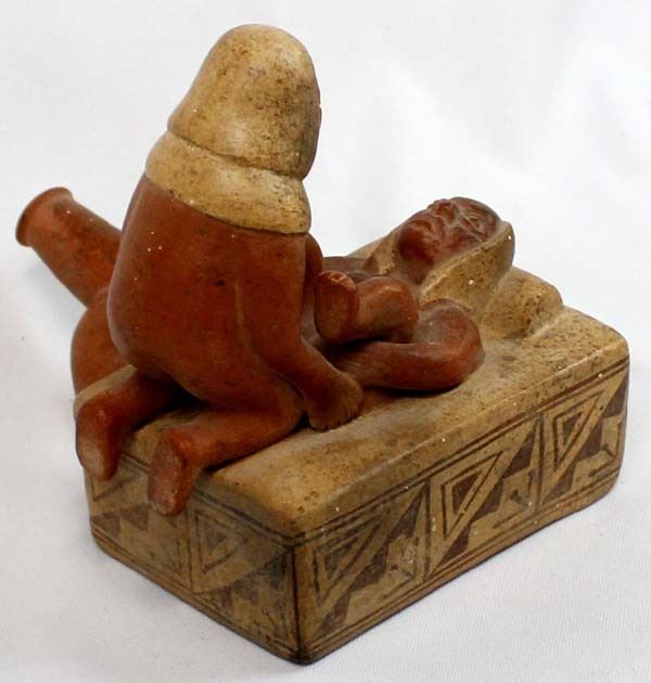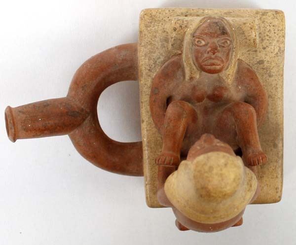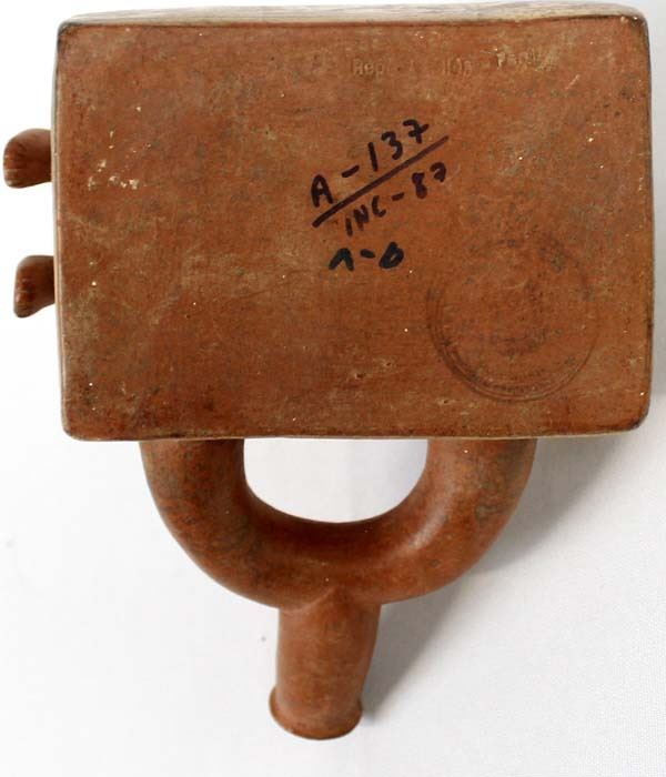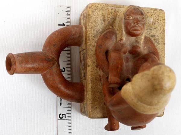 Mayan Replica Exotic Stirrup Pottery. This unusual piece measures 5'' x 6'' x 6.5''