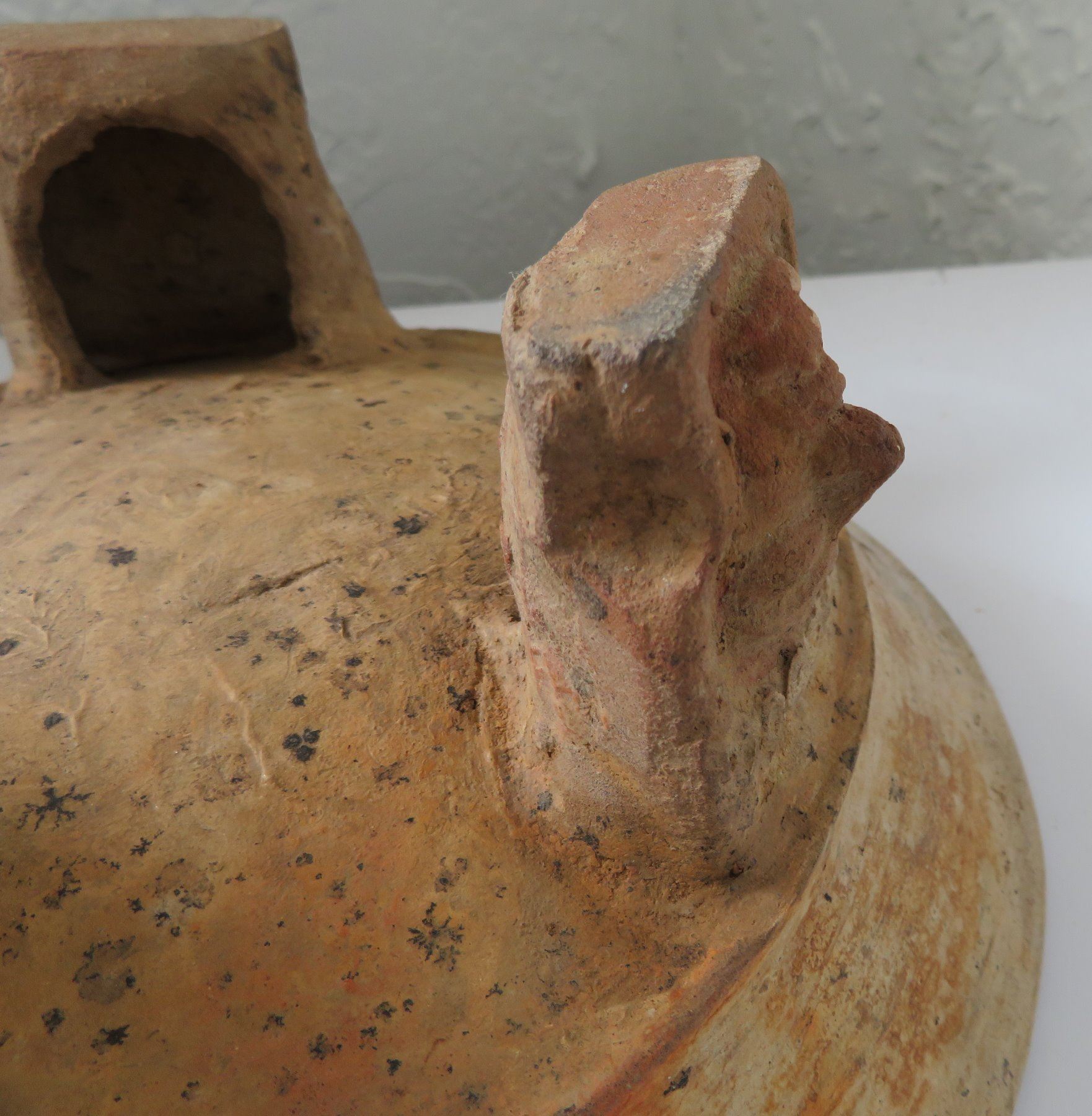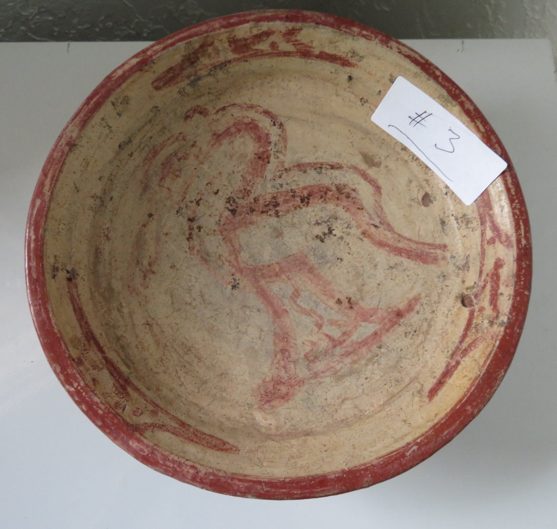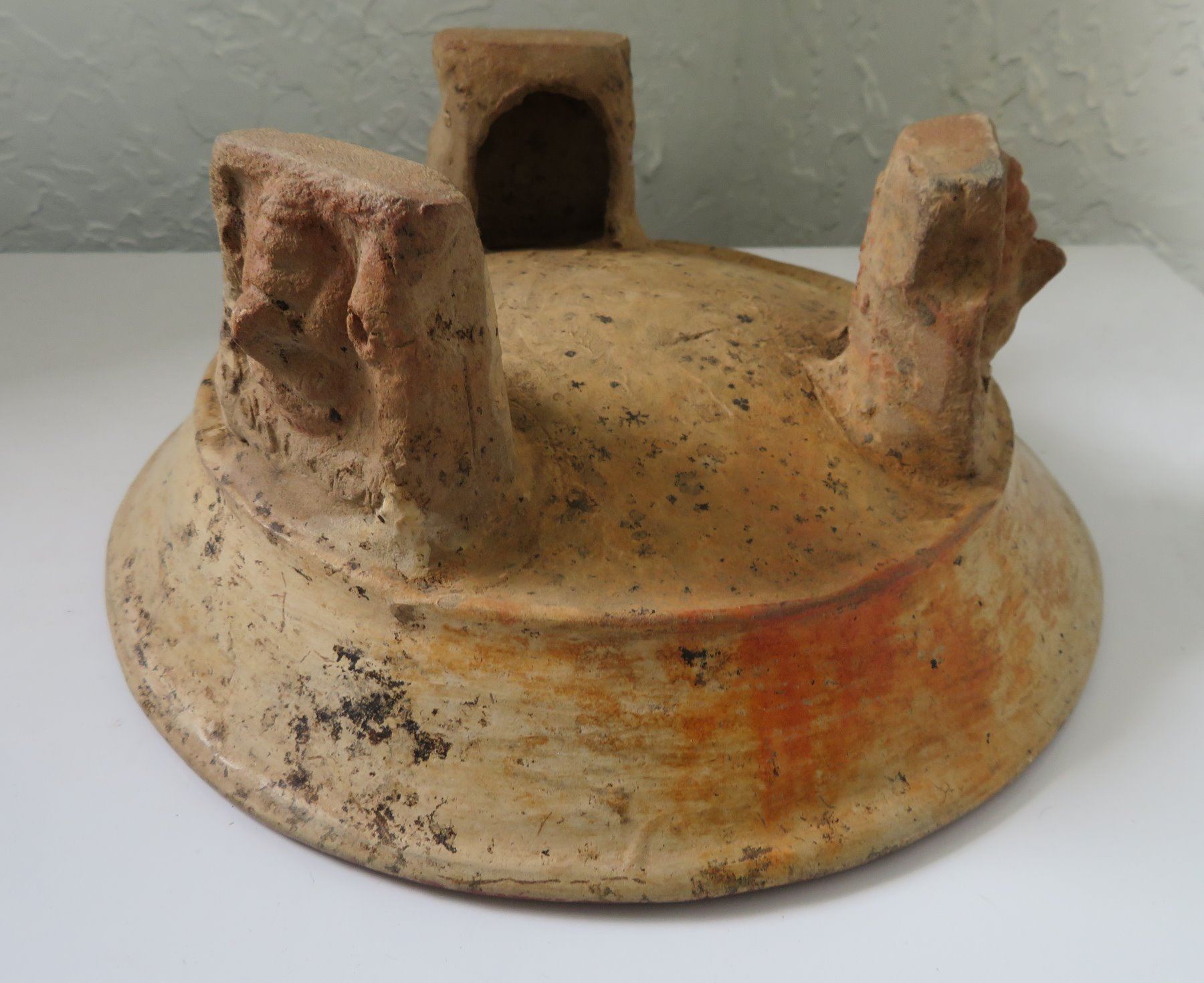 Mayan Tripod Effigy Bowl, pre-Columbian item. Made of clay, the item measures 8 3/4" x 3 1/2". Guatemala. Condition: Some paint loss, see images. Shipping: $30.00 w/insurance and signature, double-boxed.