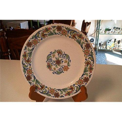 This plate is made by Mayer China. The pattern is Cordova. Beautifully decorated with colorful flowers and leaves. One small chip on back side of one edge. The plate measures 8 7/8 inches.
