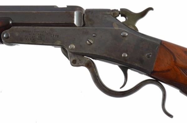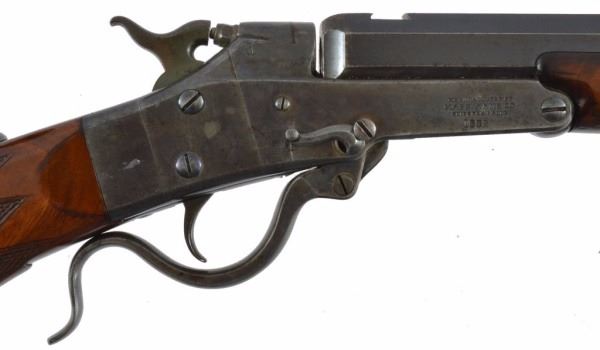 Serial no. 9099 .38-55 28" half octagon barrel in very good condition retaining much of the original blue finish & cstrong ase colors on the frame. rear peep sight. deluxe wood in very good condition.