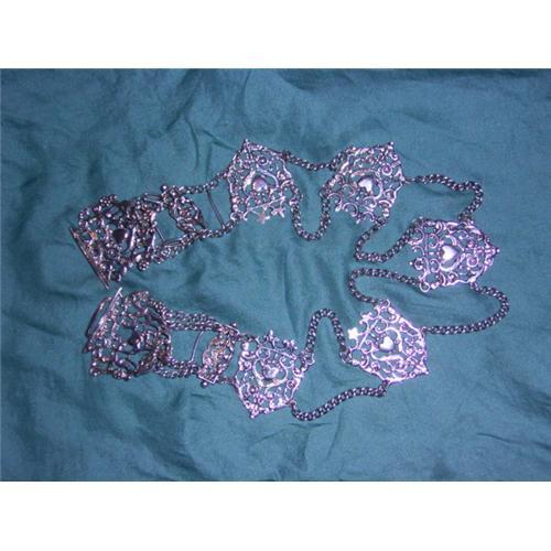 The belt is a bit small [25.6 inches long, and with some hooks you can make it smaller],and it looks like it has been made from a Mayor's Chain.