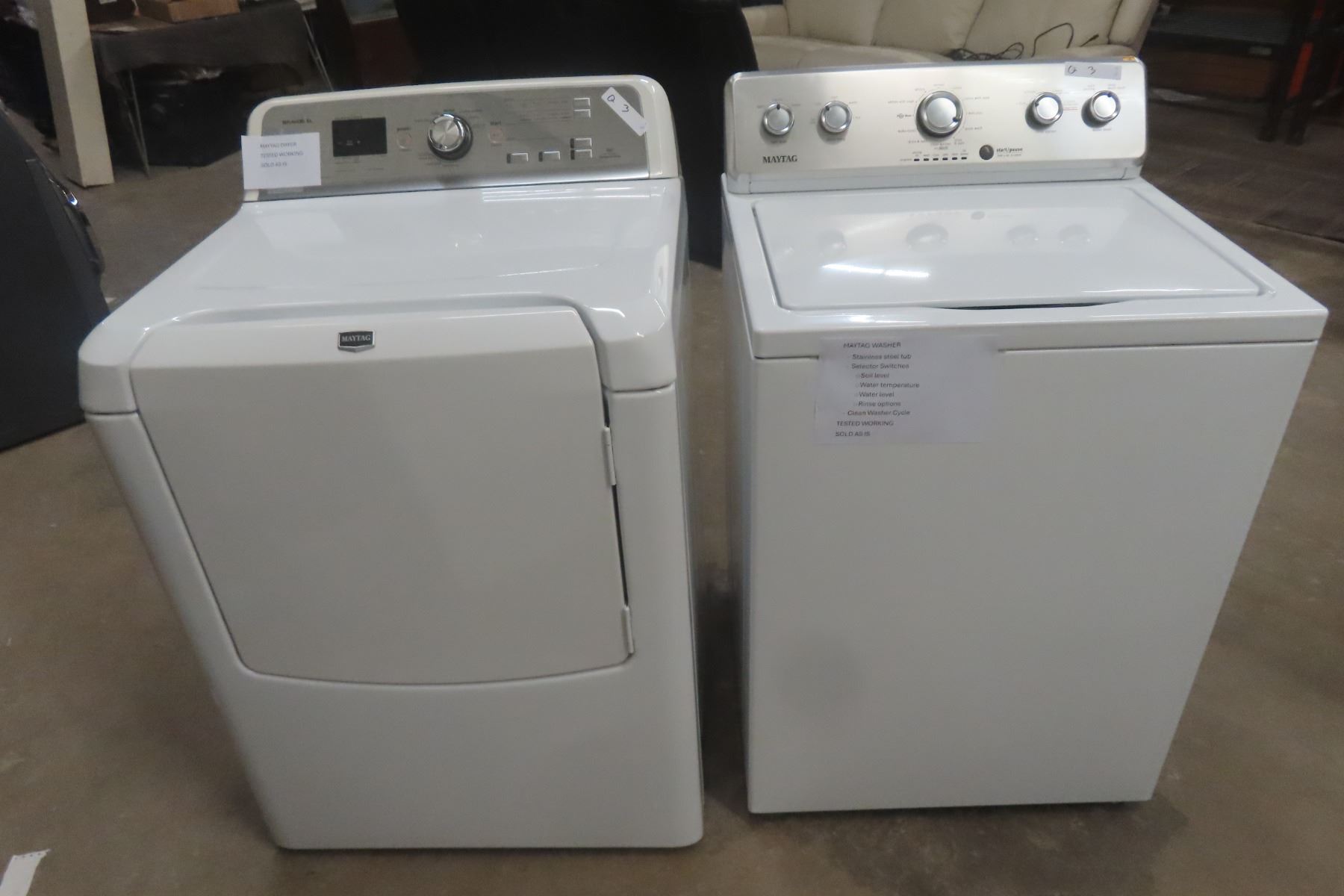 Maytag Washer – Stainless Steel Tub, Selector Switch, Soil Level, Water Temp/Level, Rinse Option, Clean Cycle and Maytag Dryer. Tested Working!
