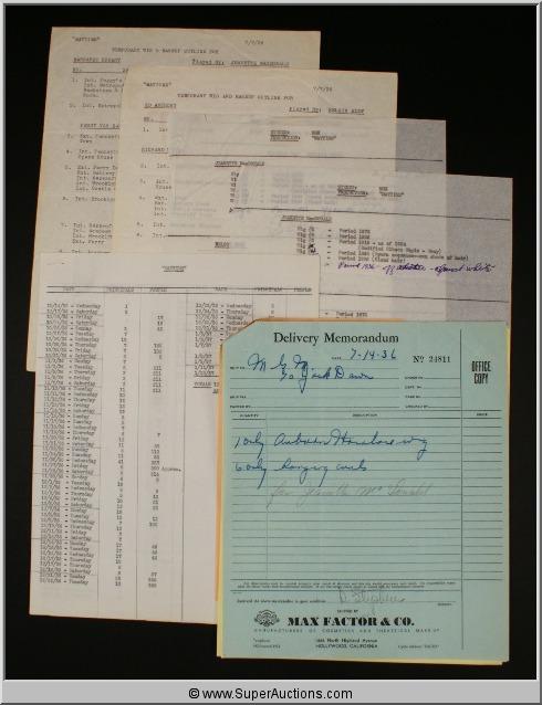 "Maytime" / Released March 26, 1937 / MGM Studios / "An elderly Miss Morrison recounts her life as the once young and beautiful opera singer Marcia Morney that fell in love with a penniless singer." / Starring: Jeanette MacDonald, Nelson Eddy, John Barrymore, Herman Bing, Lynne Carver and Tom Brown / (3) Black & White Production Stills, Temporary Wig and Make Up Outlines for Ed Anthony & Margaret Hobart, List of characters with wig type, Wig Rental Register (7) Max Factor Delivery Memorandums {Max Factor Collection}