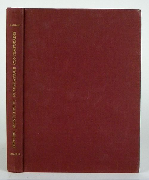 Mazard, Jean. HISTOIRE MONÉTAIRE ET NUMISMATIQUE CONTEMPORAINEÉ TOME II: 1848-1967. Paris, 1968. 4to, original maroon cloth, gilt. 310, (4) pages; numerous text illustrations. Binding a bit rubbed; near fine. Volume II only. Clain-Stefanelli 8942.