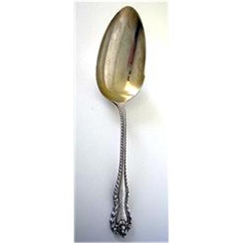 Mazarine is an elegant pattern of the 1890's. The handle is decorated with a gadroon edge and c-scrolls at the top of the handle. This is a heavy piece and is monogrammed with a script "ERH". The bowl is unusually large, not the tablespoon size.